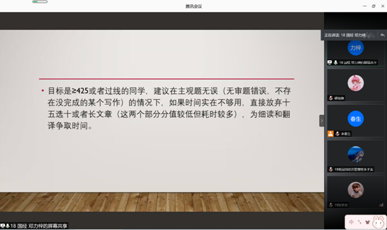 首先,李春生老师分析了英语学习对国民经济管理专业的重要意义,为2018、2019级国民经济管理专业的同学们介绍了主讲人邓力梓同学在英语学习方面取得的突出成绩。