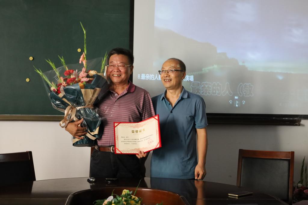 最后,在王国定老师改编歌曲《最亲的人》的优美旋律中,大家与两位教师合影留念,依依惜别。此次退休仪式传达了学院对退休教师的尊重与关爱,增强退休教师归属感和荣誉感,也激励着青年教师涵养师德,传承优良师风,为学校改革创新跨越发展做出应有的贡献。