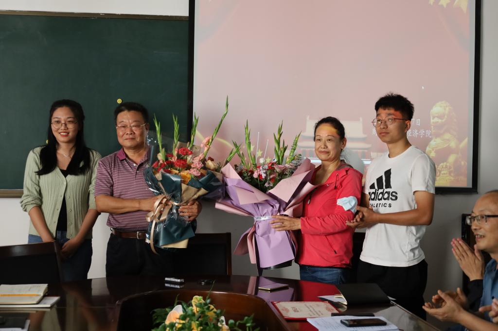 峥嵘岁月话感恩,不忘初心献余热。荣退仪式在工会主席赵左丽老师的主持下拉开帷幕。在欢快的乐曲和热烈的掌声中,两位新入职青年教师分别向谭老师、郭老师赠送鲜花,学院领导为谭老师、郭老师颁发了从教三十余年荣誉证书。学院党委书记高岳在致辞中回顾了两位教师三十余年的从教经历,对他们为学院学科发展、人才培养、专业建设等方面做出的贡献表示衷心感谢;两位教师作为学院、学科、专业发展的见证者和开拓者,他们筚路蓝缕、艰苦奋斗的精神和德高为师、身正为范的品质激励着后辈们砥砺前行;两位教师虽已退休,但仍是学院引以为傲的教师,“桑榆非晚,微霞满天”,希望他们能够“退休不退志、离岗不离心”,继续关心和支持学院工作,为学院发展建言献策,为立德树人发挥余热。