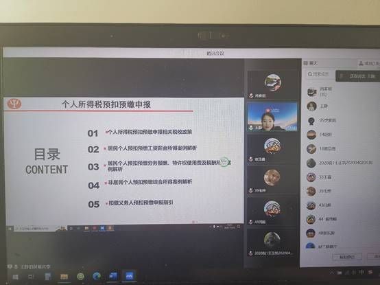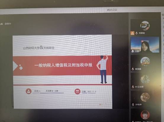 财税学科竞赛委员会于11月5日,邀请天扬君合财税服务集团专业讲师为备赛学生举办了内容丰富的纳税申报实务讲座。讲座通过腾讯会议线上举行,包括参赛选手及财政税收专业40余名学生参加,并取得了圆满成功。