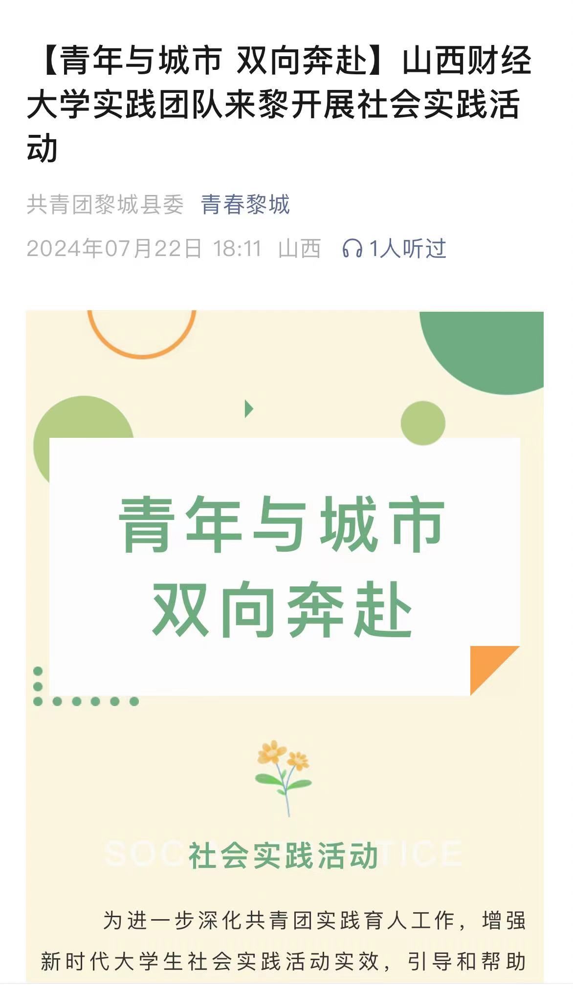 为进一步深化共青团实践育人工作,增强新时代大学生社会实践活动实效,引导和帮助青年学生走进基层、感知基层,在社会课堂中受教育、长才干、作贡献,近日,团县委助力91直播