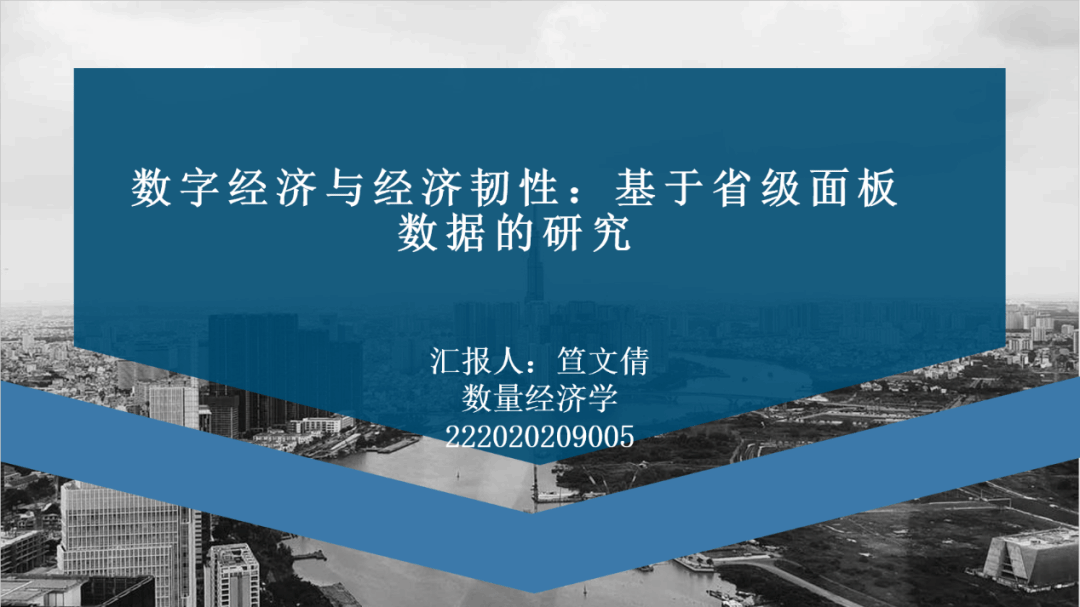 “数字经济是推动我国经济高质量发展的重要的新经济形态。当前我国面临经济增长速度放缓,经济恢复的基础尚不牢固,研究数字经济对经济韧性的影响,对稳定当前实体经济和实现经济长期高质量发展,制定合理政策、实现数字经济与经济韧性协调发展都具有较大的理论和现实意义。”笪文倩同学分享了《数字经济与经济韧性:基于省级面板数据的研究》一文。她选取2013—2022年我国22个省份面板数据,在测算数字经济发展水平和经济韧性水平的基础上,分析数字经济发展对经济韧性的影响。研究表明:数字经济发展对经济韧性有着积极影响;产业结构升级、资源配置效率提高、人力资本水平提升和科技投入增加在数字经济影响经济韧性中发挥调节作用,但对外部依赖程度过高时反而会对经济韧性产生不利影响。据此,可以提出相关的政策建议。